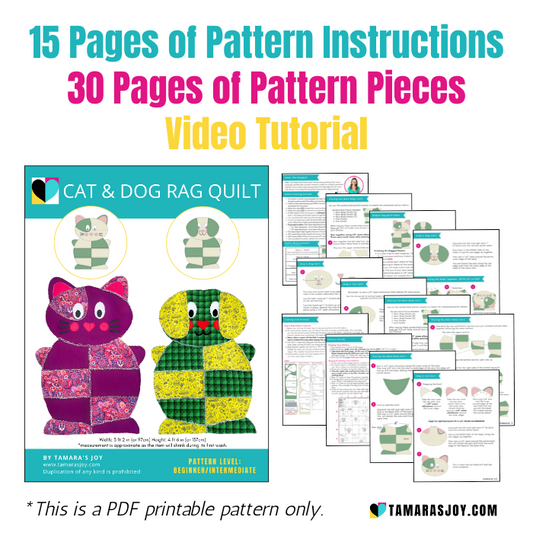 Cat & Dog Animal Rag Quilt (PDF Pattern + Video Tutorial)